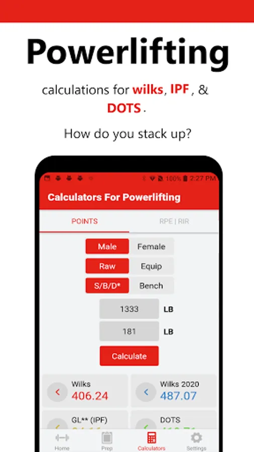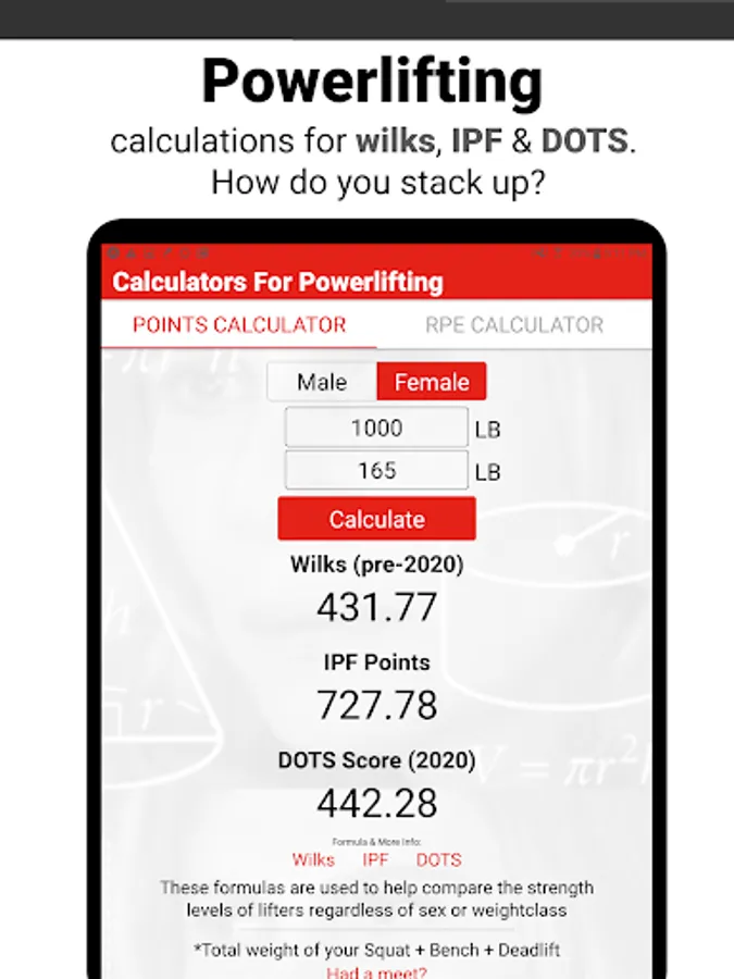 - Wilks, IPF Points, DOTS calculator