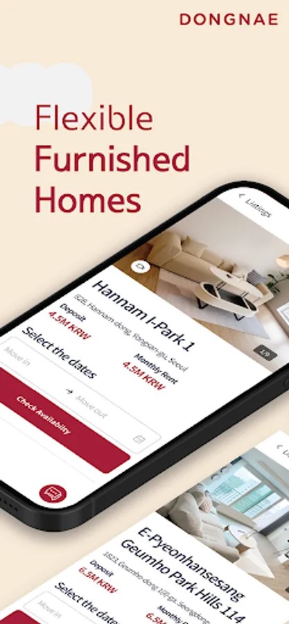 1. Dongnae provides furnished homes equipped with modern and stylish furniture, appliances, and everyday items for daily living.