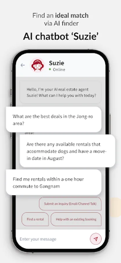 3. AI chatbot 'Suzie' recommends the perfect location and home for you based on your preferences and needs.