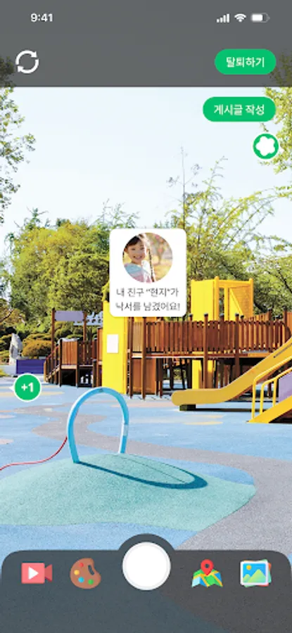 Find graffiti and photos of other friends in the same space and make new friends.