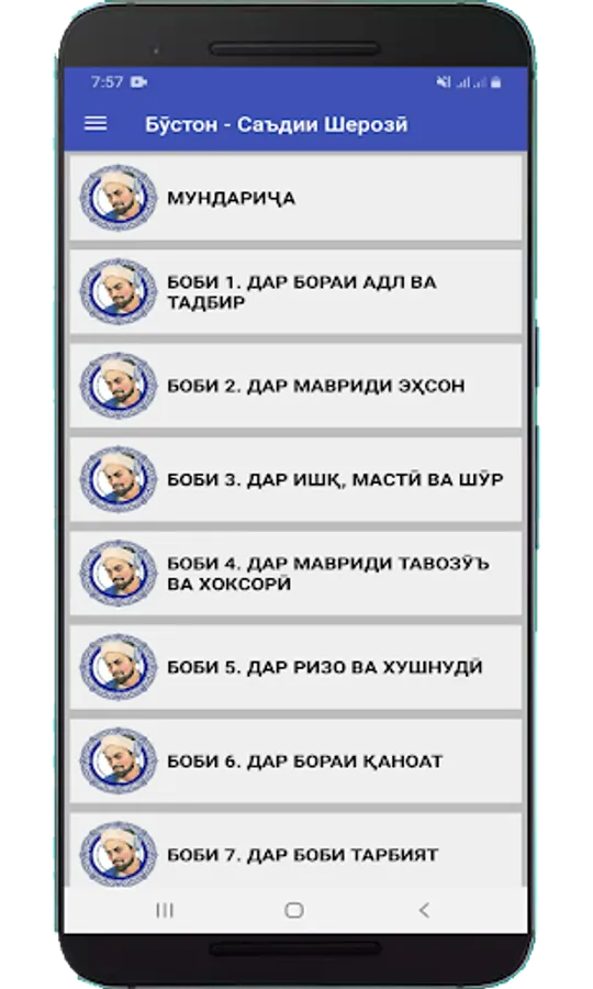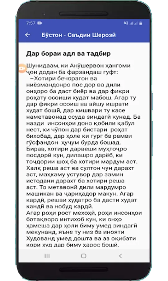 Donishmandi tojik Marufjoni Istaravshani bo muhabbat va zahmati ziyod “Buston”-ro, ki sar to grind she’ri nobi forsist, ba nasr gardonidaast.