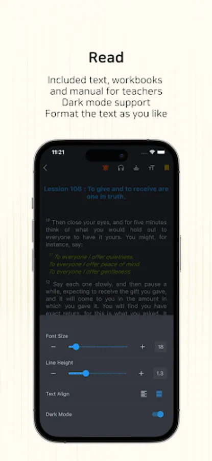 ACIM(A Course in Miracles) is the most powerful scripture that can lead you to the path of salvation through enlightenment. In the ACIM Lesson, theoretical basic knowledge is necessary, but it is more important to train the mind to experience actual enlightenment. This app is designed to maximize practice of the ACIM Workbook, which is designed to be practiced every day for a year.