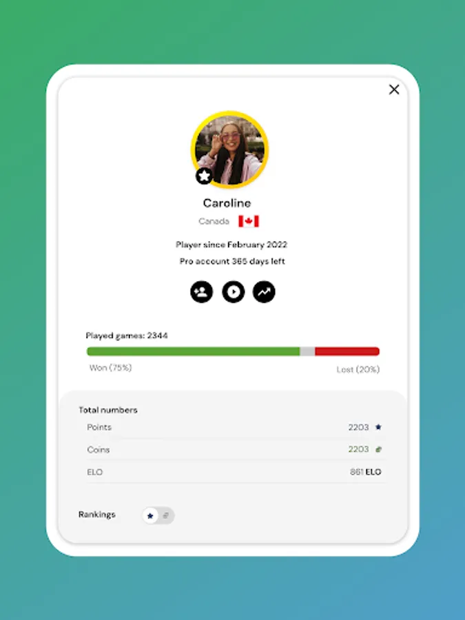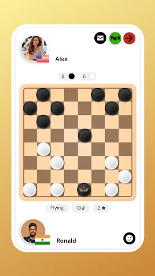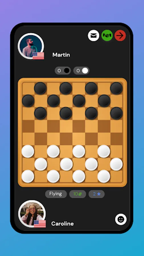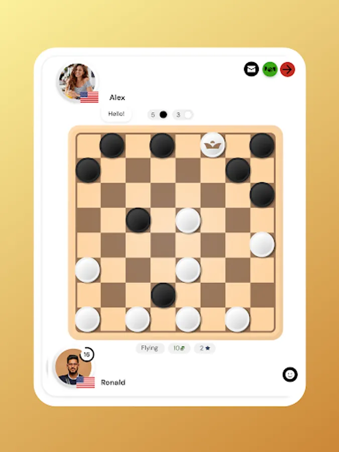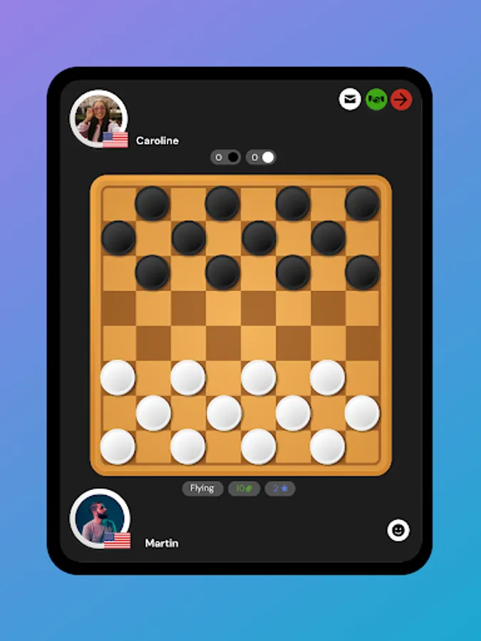 Chat with Dama players with the in-app messenger. Send emojis and make new friends that share the same passion for Draughts and board games.