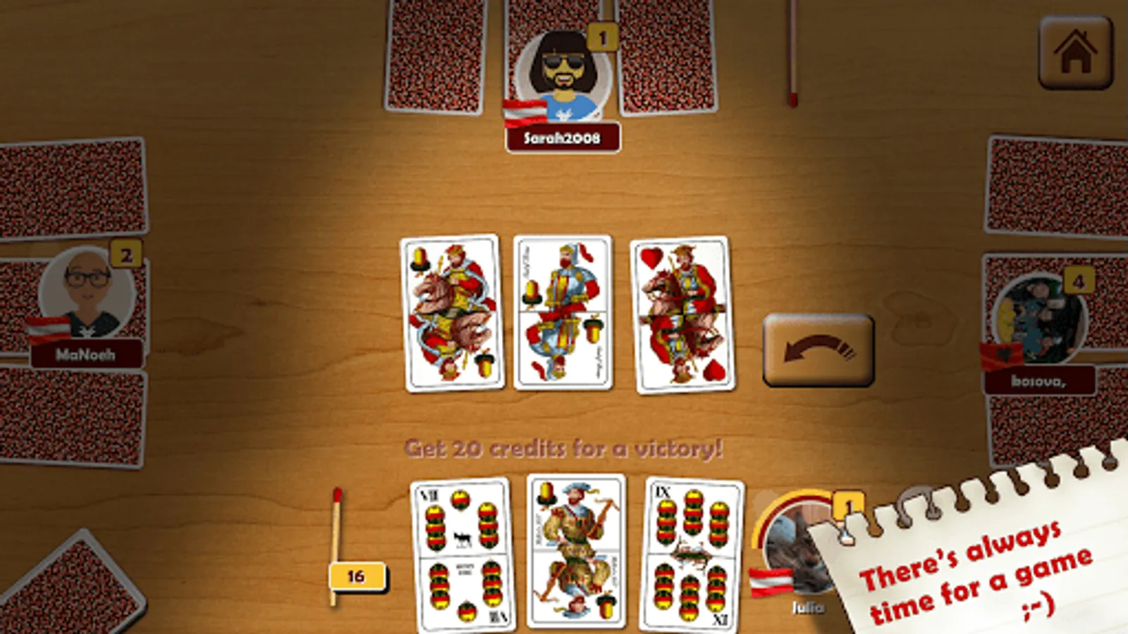 It is among the trending games for those who enjoy playing free card games, drinking games or party games like e.g. Solitaire, Skip-Bo, Cribbage, Pinocle/Pinochle, Canasta, Uno, Rummy 500, Bridge, Batak, Durak, Tonk, Enogtredive and Crazy 8.