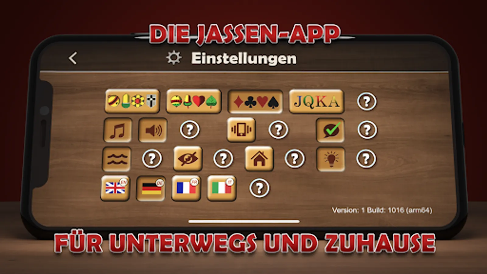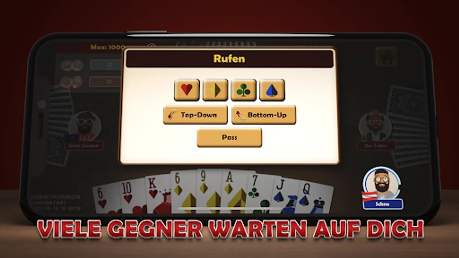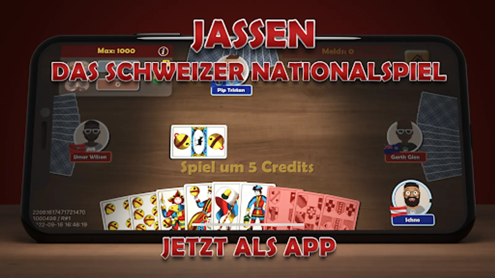 No physical cards on hand? No problem! Jassen is now available on smartphones and tablets! Play with friends, compete against the computer offline, or join the online multiplayer mode.
