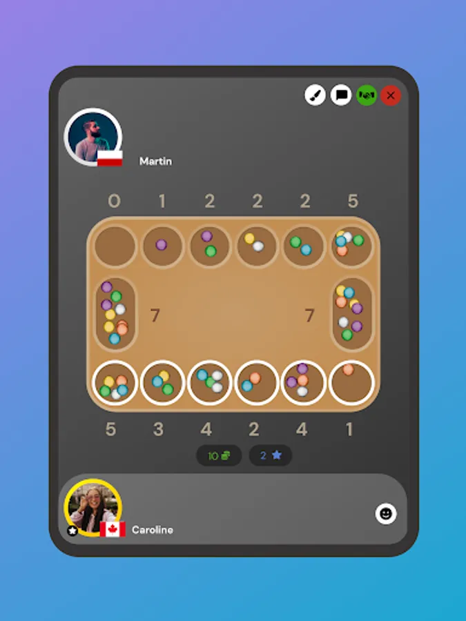 If you are a beginner and don't have a strategy yet. You can start with training against the Computer or in the offline 2 player mode before you enter the challenging world of Mancala. 😉