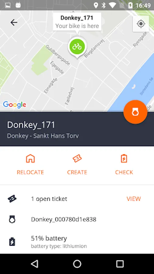 This is the Donkey Republic app for Bike Partners, with which you can easily manage your fleet right from where the bikes are, on the streets. It helps you unlock a bike, check lock stats, manage bike tickets and relocate bikes.