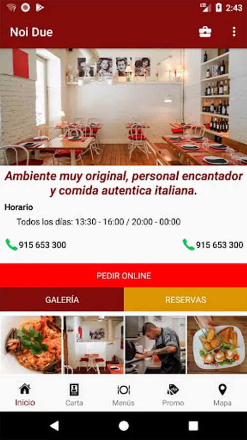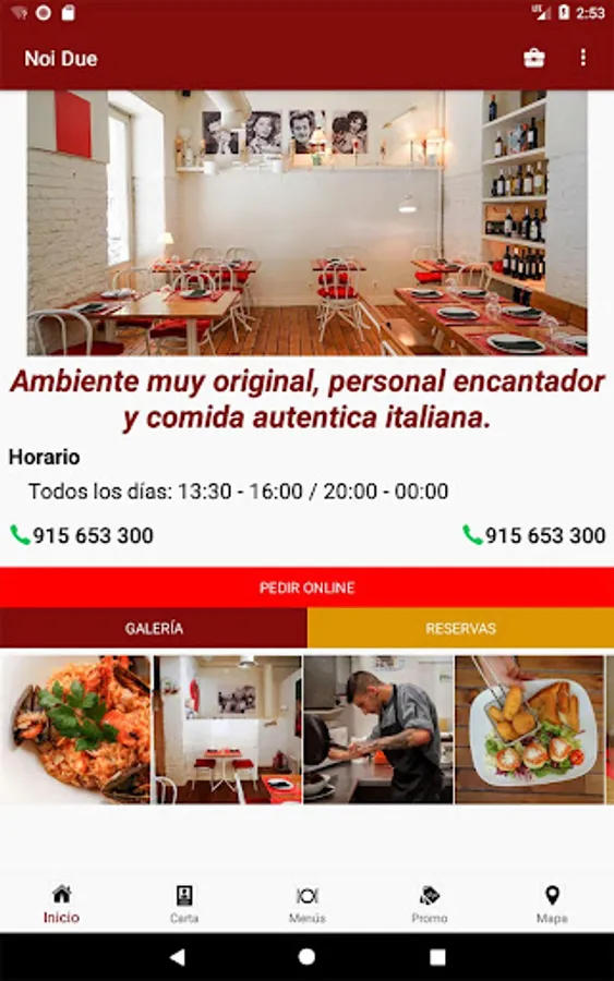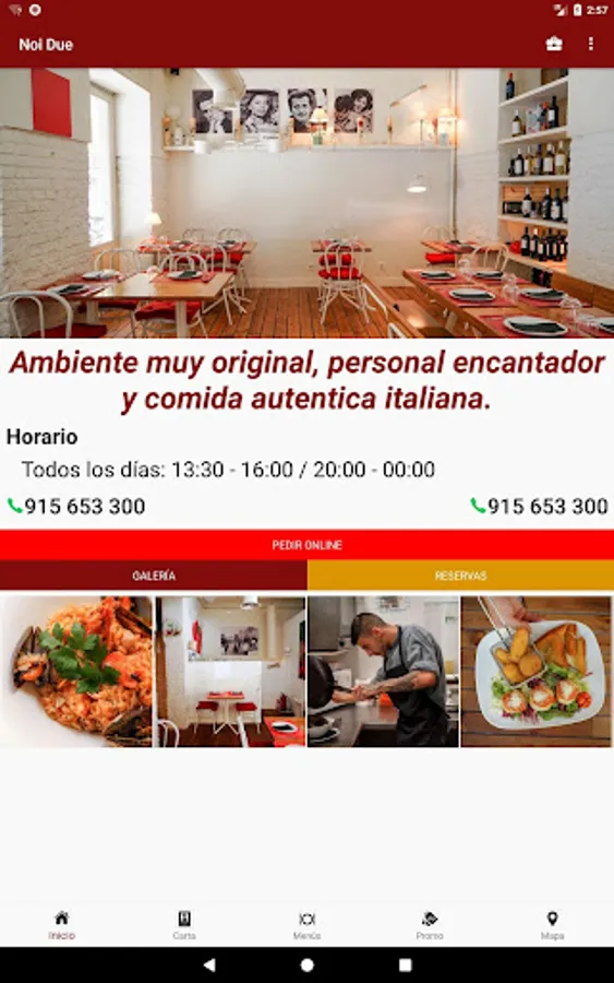 The best Italian restaurant in Madrid, quiet atmosphere, perfect for a gathering of friends, a couple or exit a business meeting. With a warm welcome always it makes you feel at home. delicious and beautifully prepared dishes.