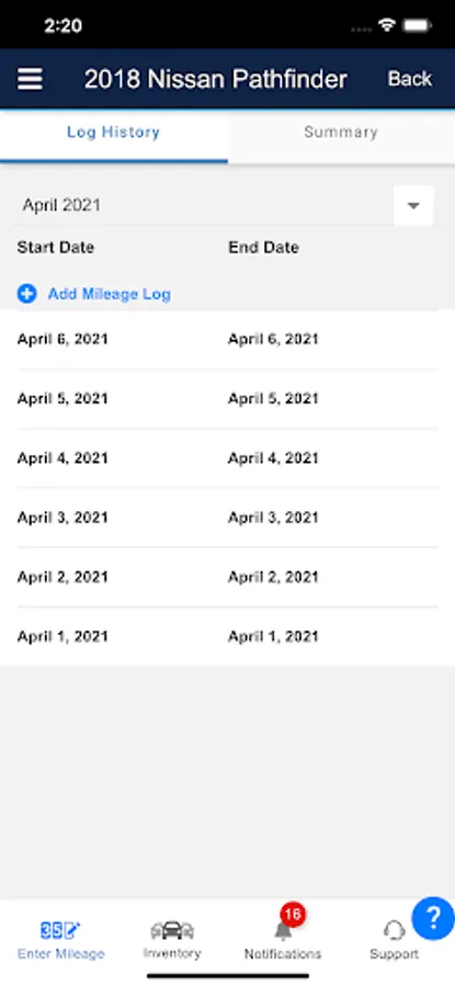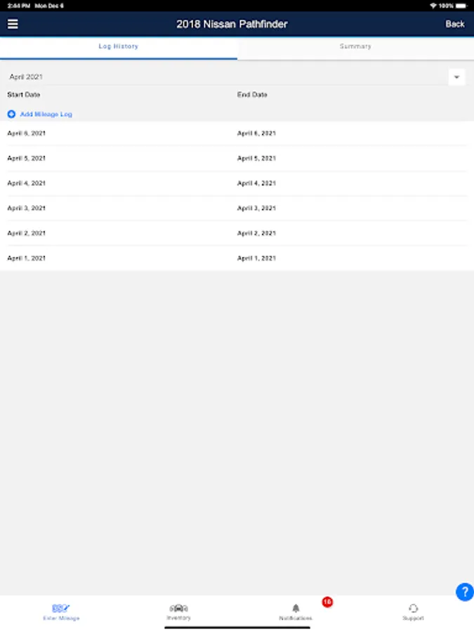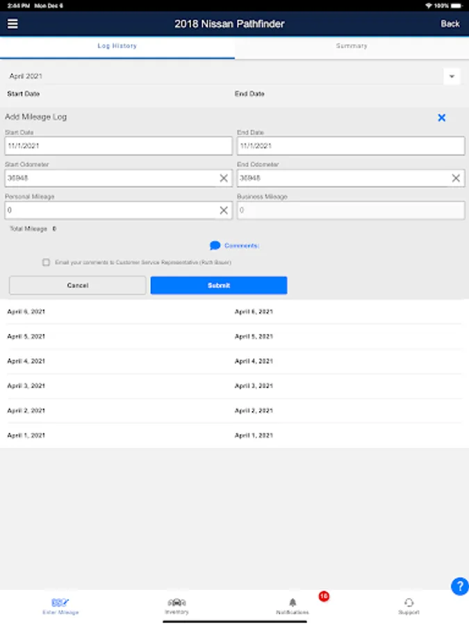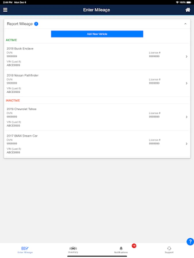 • B&P – Allows user to view, edit and delete new and existing mileage records for their active and inactive vehicles