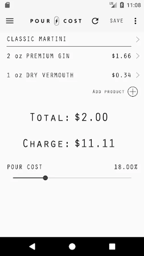 In bars and restaurants in the US, we order bottles of booze by the liter, serve their contents by the ounce, and charge by the dollar based on a target cost percentage. This makes for taxing math that we’d all rather not do. The Pour Cost app does that math for you, without the need to type anything in. You adjust the sliders to fit the product, cost, pour, and pour cost you desire — and Pour Cost does the work.