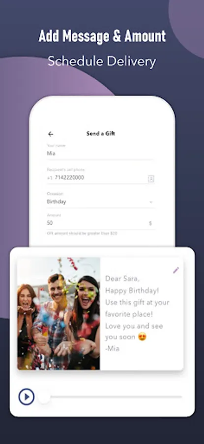 Buy gift cards with utmost ease and schedule gift card delivery. Personalize each egift card and add photos, greetings, wishes and custom messages. Use it for birthday gifts, graduation gifts, Christmas gifts, anniversary gifts and more!