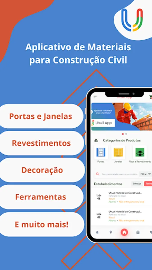Uhull facilitates the delivery of construction materials in your city. Place orders at your favorite establishments and receive them in the comfort of your home. Have in your hands all the products from your favorite distributor and receive them in the comfort of your home, with practicality and safety. It's simple and safe!