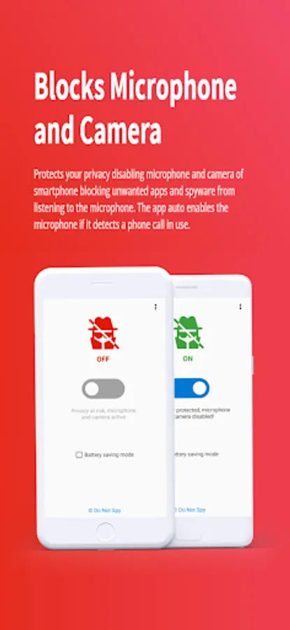 Protects your privacy disabling microphone and camera of smartphone blocking unwanted apps and spyware from listening to the microphone. The app auto enables the microphone if it detects a phone call in use.