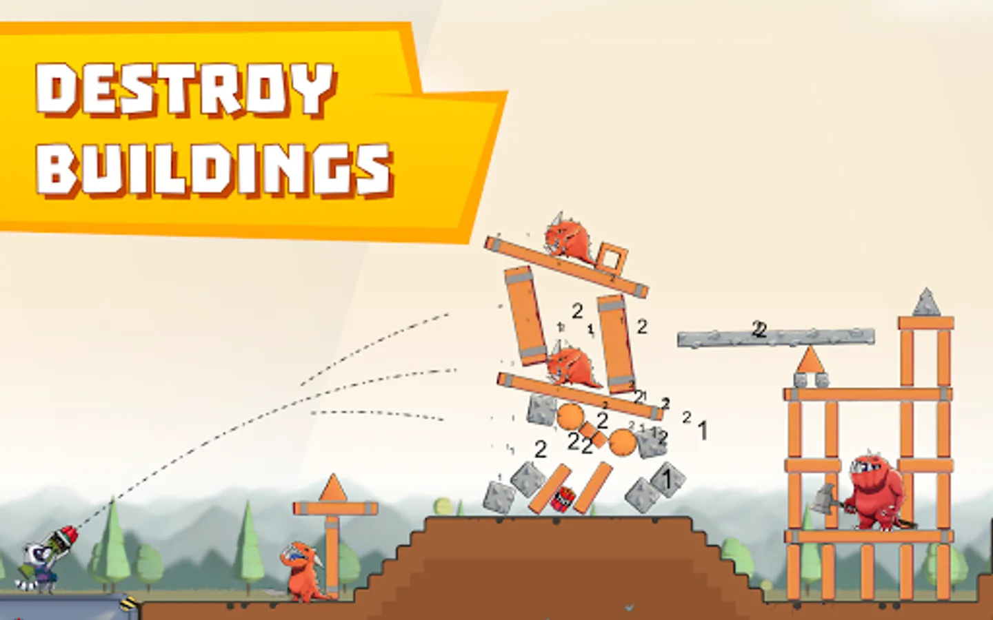 Use various rockets to break down levels and outfight the invaders. Destroy the landscape, demolish buildings, blast dynamite and crush enemies with advanced destruction capabilities.