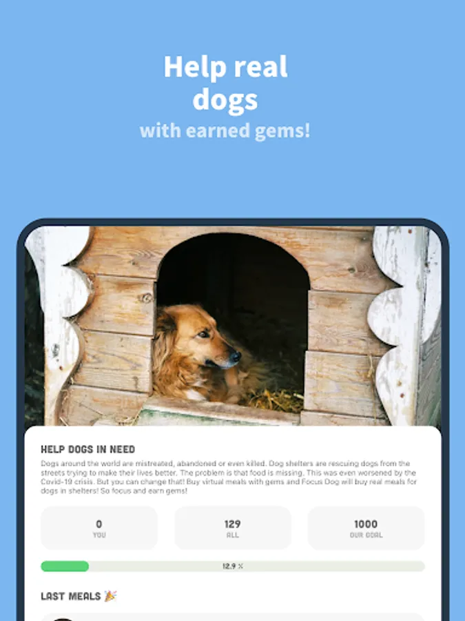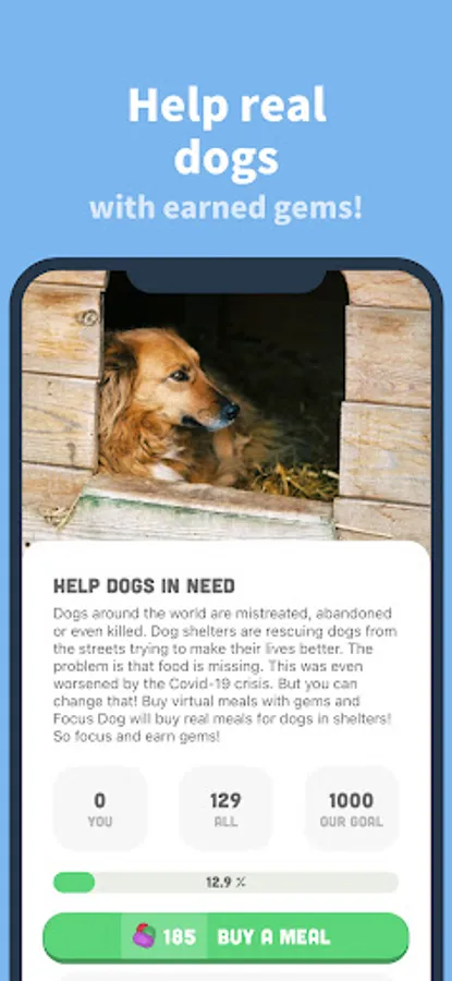 • Help real dogs in need and make a difference. You can gift your gems as a donation to feed real dogs in shelters.
