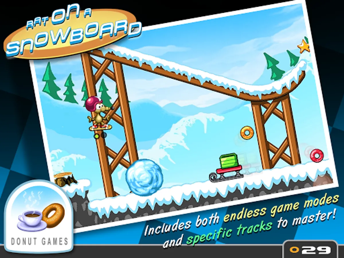 * Rat On A Snowboard is free from ads and playable at no cost. Two game modes are available right out of the box.