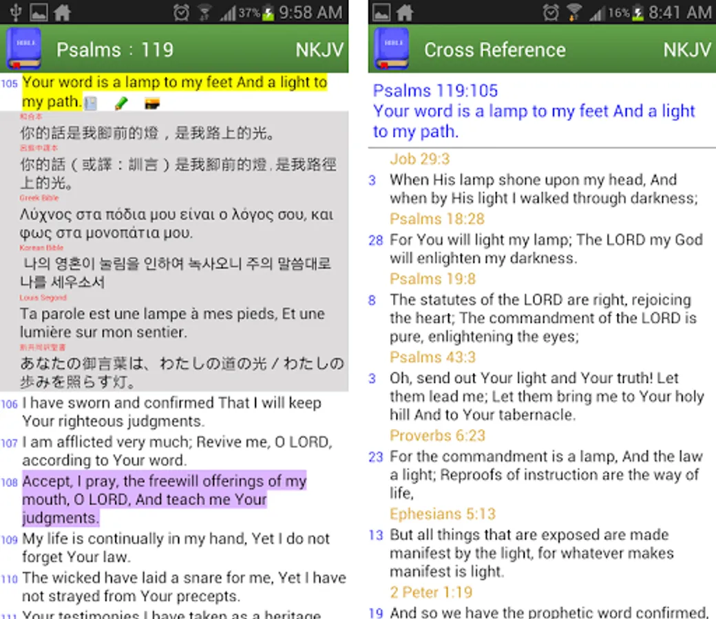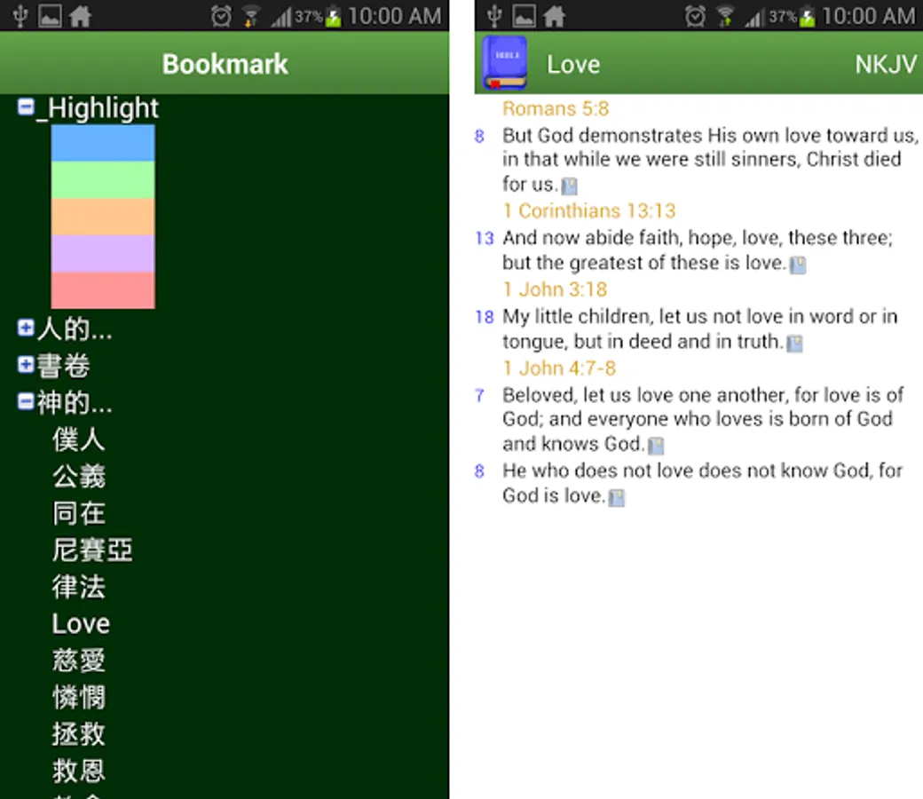 ✔ built-in common verses index like "My comfort", "My living", "Evangelistic" so that you can quickly find some reminder from God in need