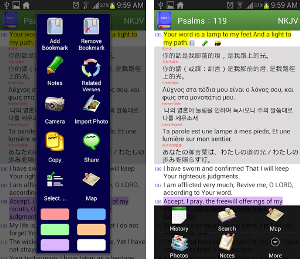 ★ add bookmark/note/photo, copy and share functions are limited to new testament only