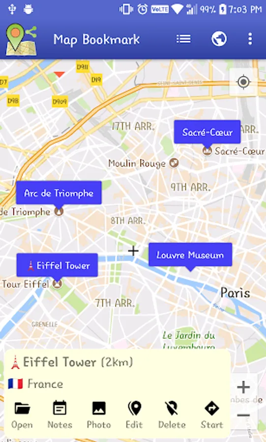 ✔ optionally attached unlimited text notes and photos to a bookmark