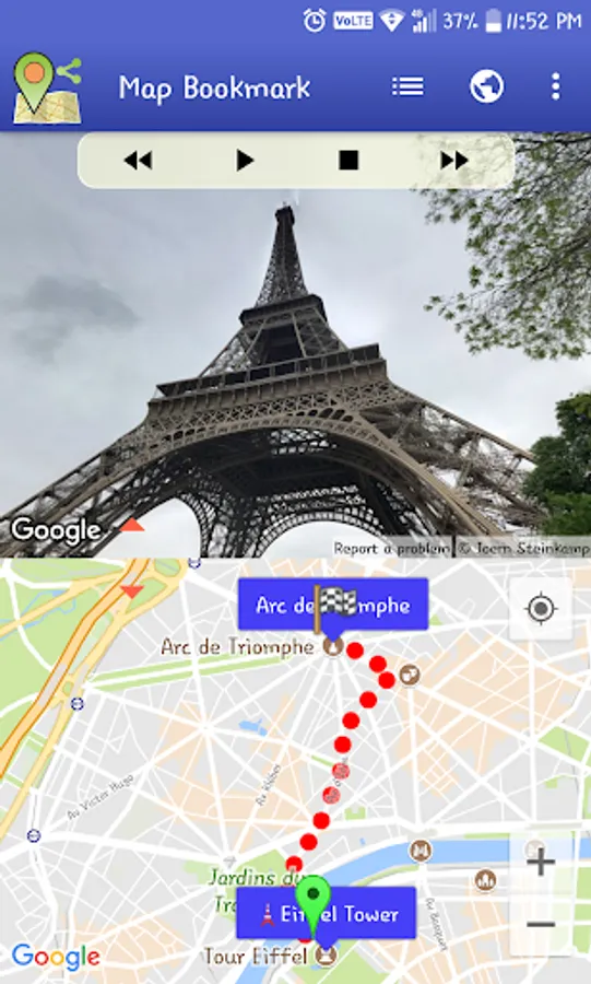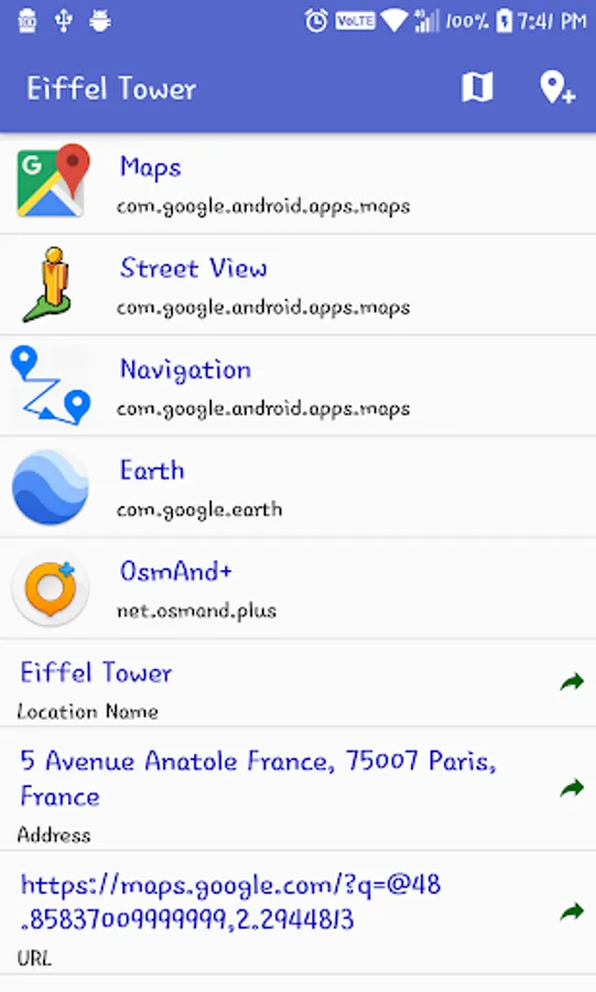 ✔ display location's street address, latitude/longitude and URL (useful for travel planning)