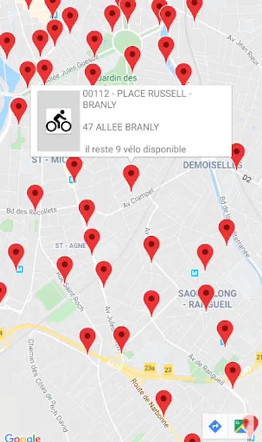 This application will inform you about the location of stations, the number of bikes available per station, and which one is closest to you having an available bike.
