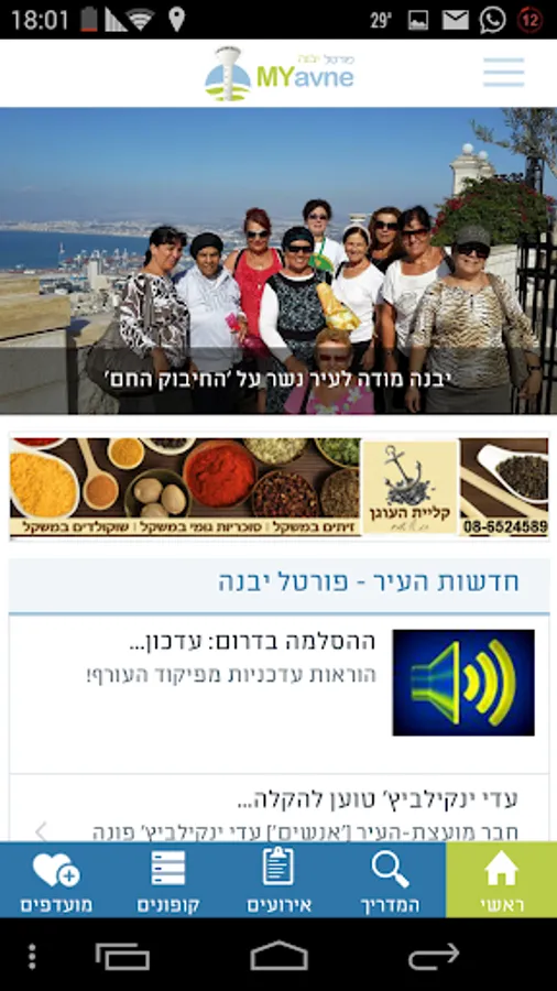 Site built - is an application that provides MYavne information on everything that happens in the city of Yavne such as news, events, sports and culture. The app offers Business Index and services locally, and Coupons