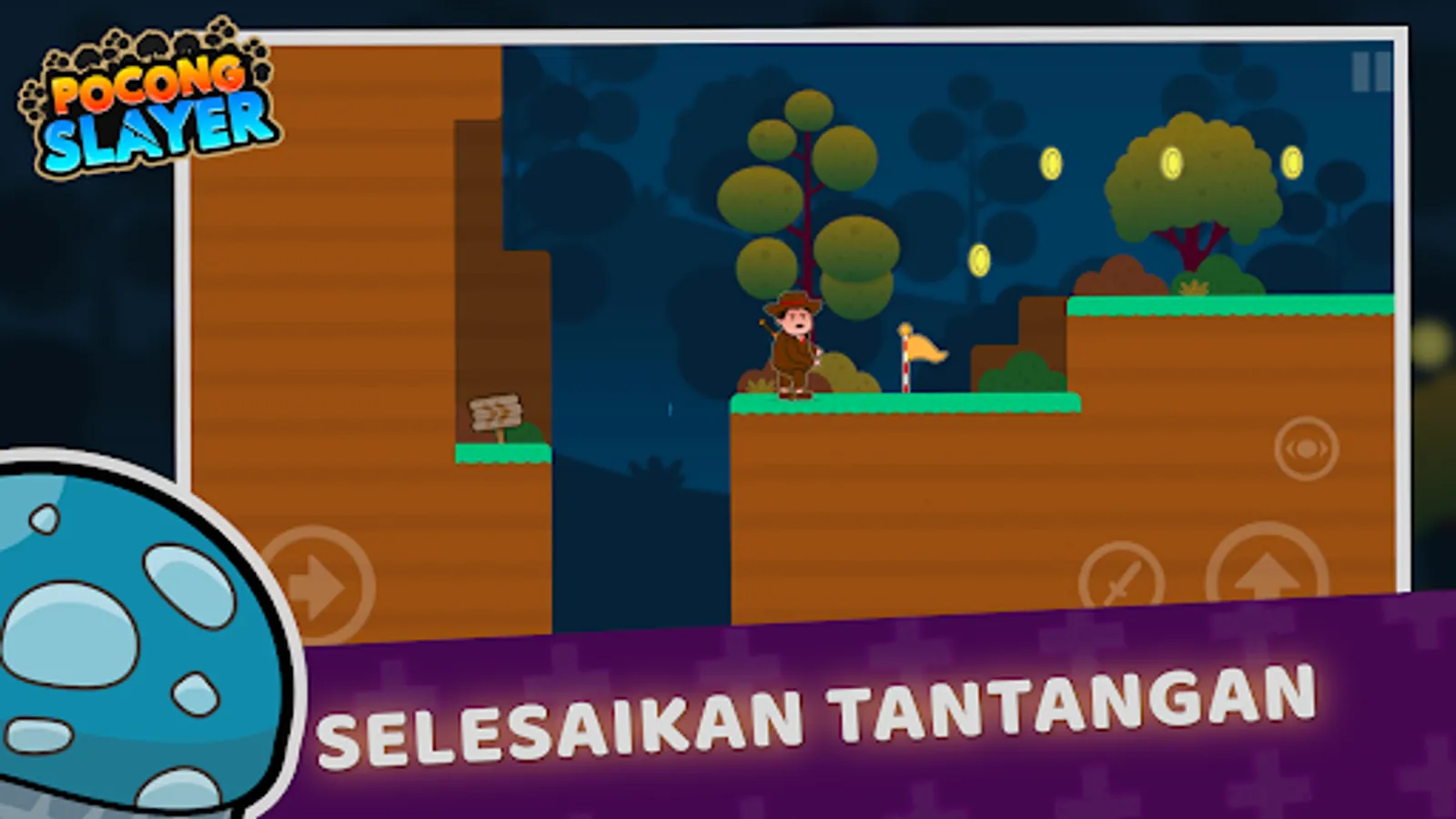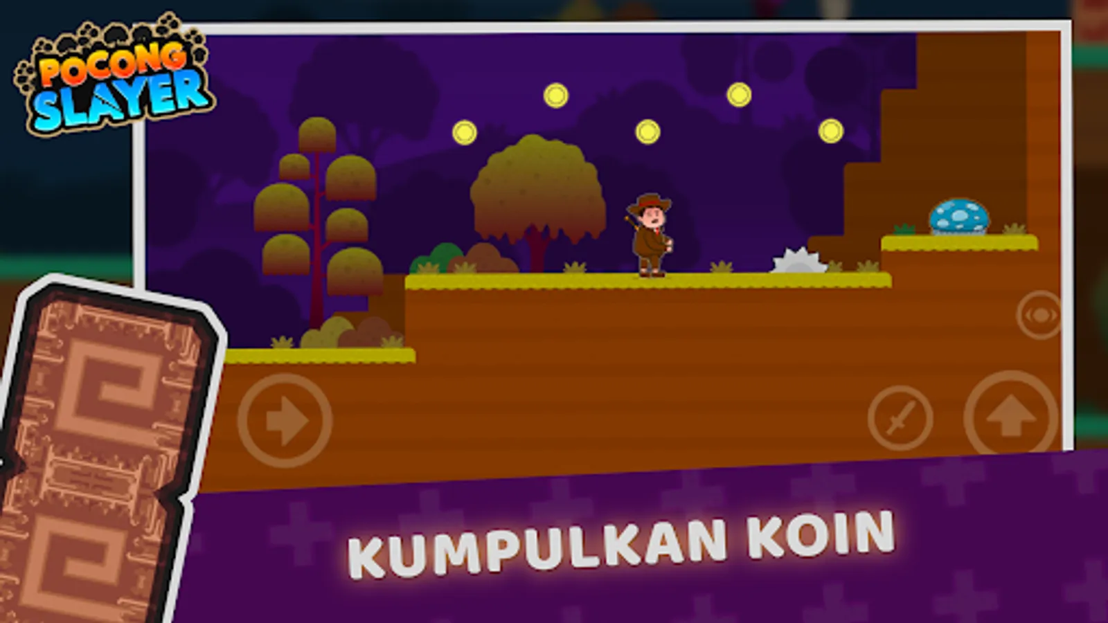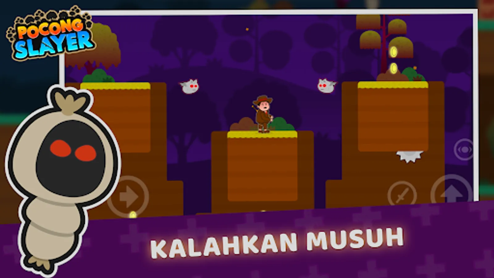 Pocong and other enemies began to appear in the area around the forest full of traps and very dangerous, a pocong slayer was assigned to an adventure through the forest, eradicate enemies, look for treasure chests, and collect coins.