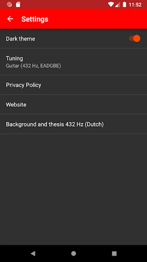 This app tunes your instrument to a keynote of 432 Hertz (Hz). This is the frequency of the central A. 432 Hz, unlike the traditional 440 Hz, resonates with the electromagnetic frequencies around you. Want to know more about this theory? See (Dutch): https://drive.google.com/file/d/1Tzv4AeMssdYEoyRZovt5pE3N8X0VyR25/view?usp=sharing. NOTE: This is a DUTCH thesis, no translation available.