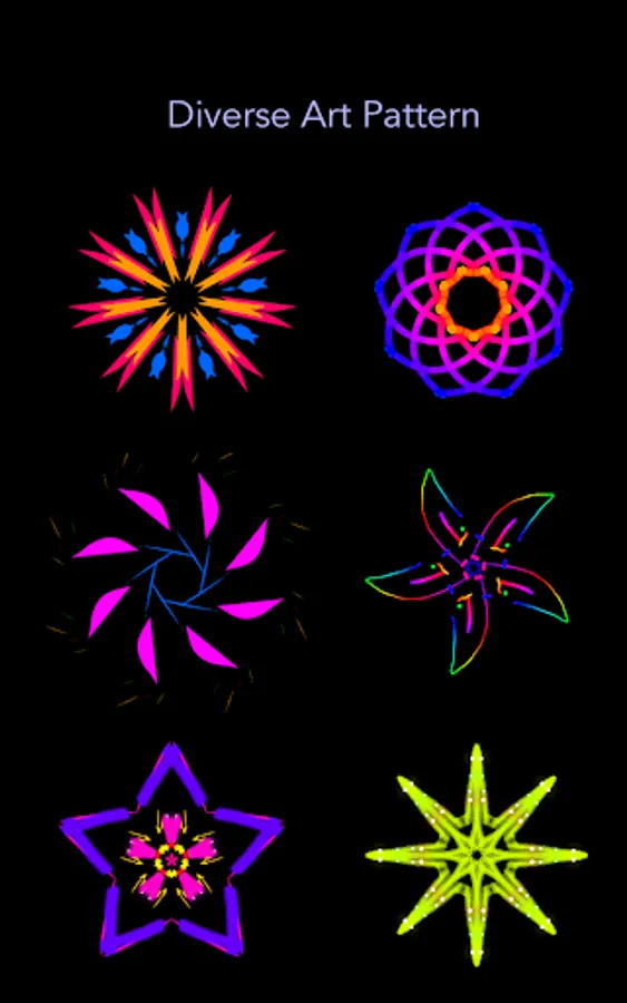 * Diverse drawing patterns to create kaleidoscope and mandala drawing