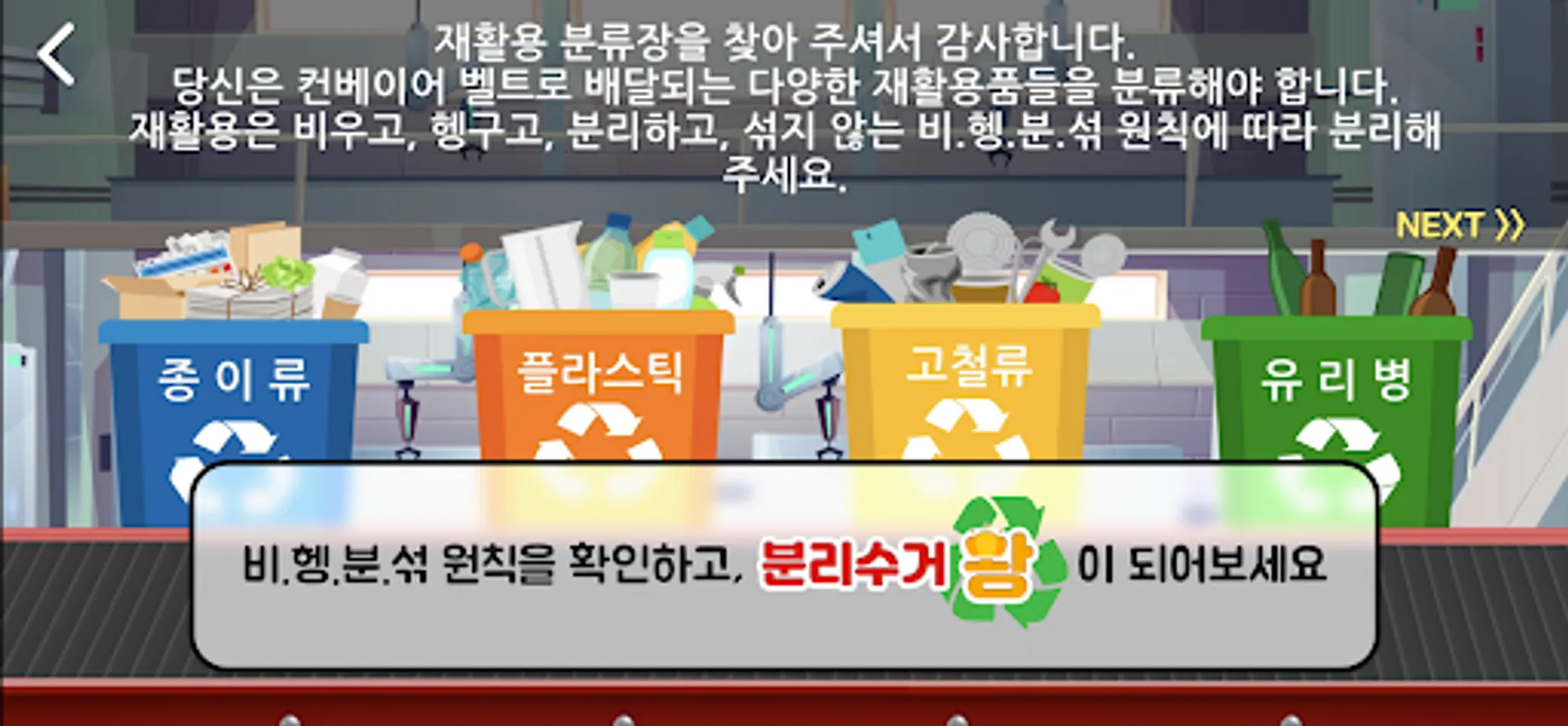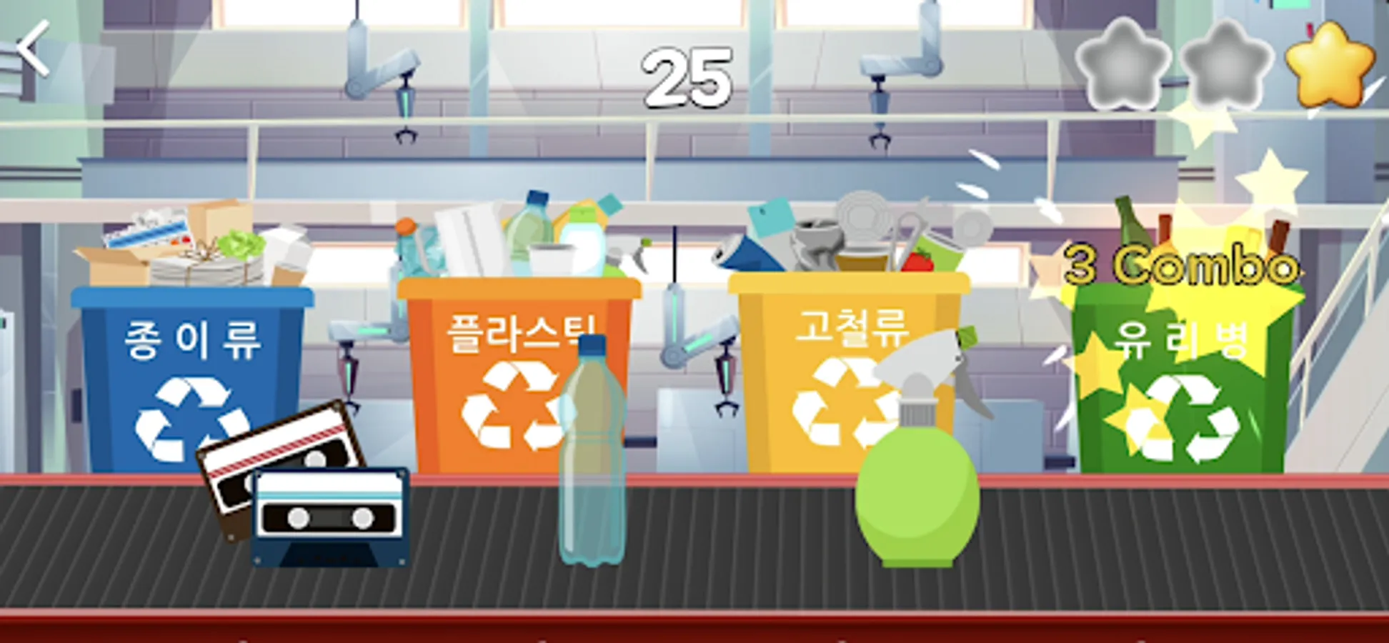 I challenge the by sorting various recyclables that are transported on the conveyor belt.