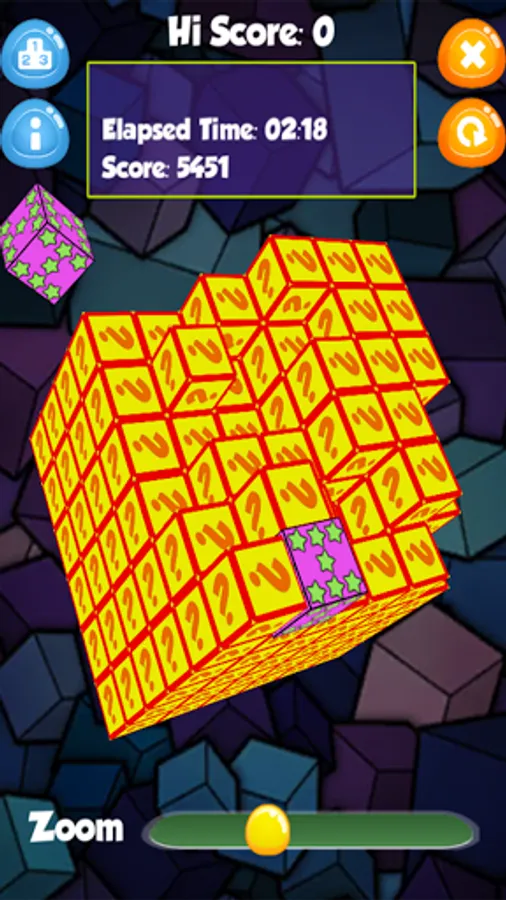 A fast paced game with a smaller 3x3 cube block and a 30 second time limit. How quickly can you clear the cubes, quick thinking and fast reactions will be required to top the leader board. Holder of the weekly best score is displayed on main menu.