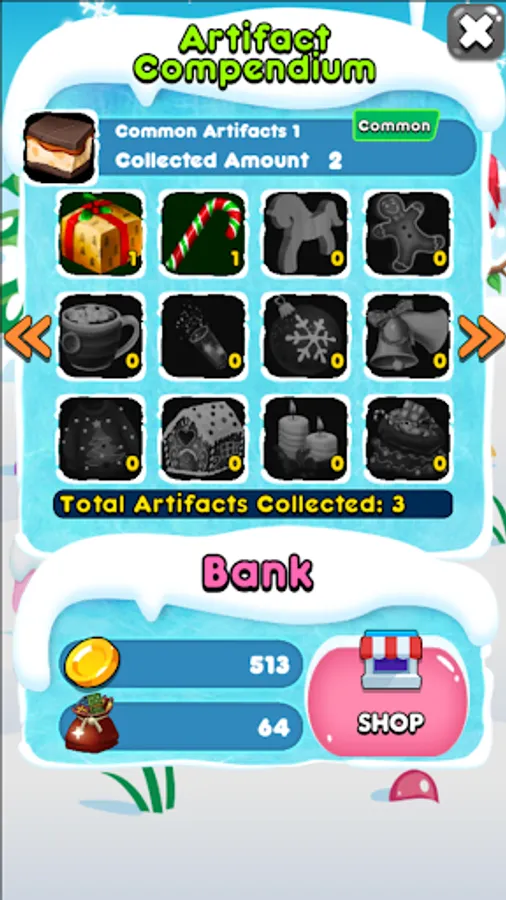 Upon successful completion of games you have a chance to gain gold, artifact fragments or whole Christmas artifacts.