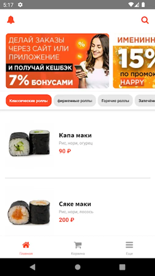 Here you can order delicious rolls, sushi and snacks. Fast and good price