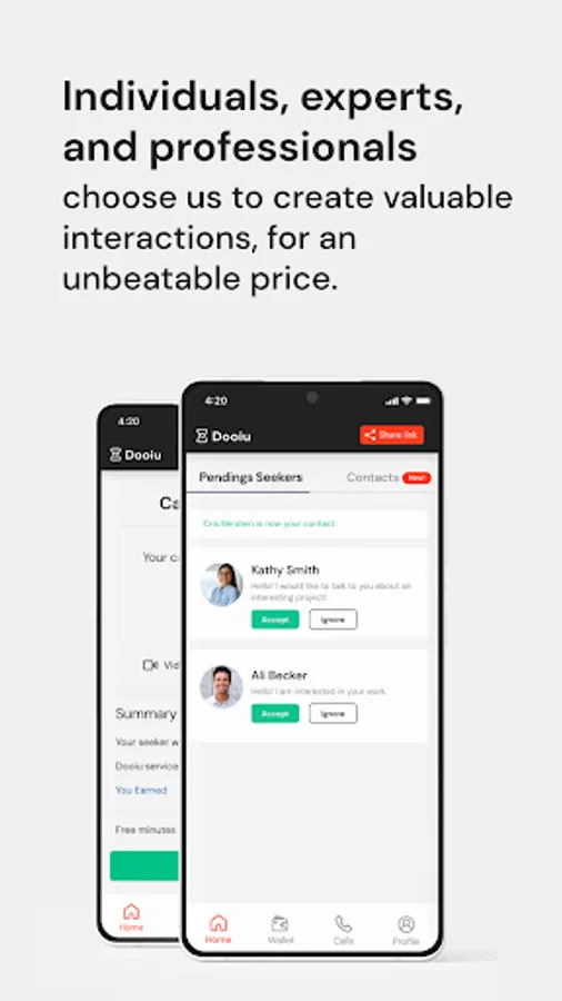 Invite and engage with independent Service Providers for personalized calls. Explore a diverse range of knowledge workers, including counselors, experts, and more. Please note that Service Providers are independent individuals and not employees or associates of Dooiu.