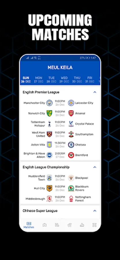 Meul Keila, gives you all the live schedule, scores, standing, and latest news to keep you up to speed with the world of football. Personalized news and notifications make it easy to follow your favorite teams and players. And quick match updates make sure you never miss a match, no matter where you are.