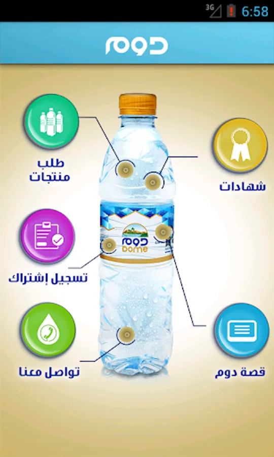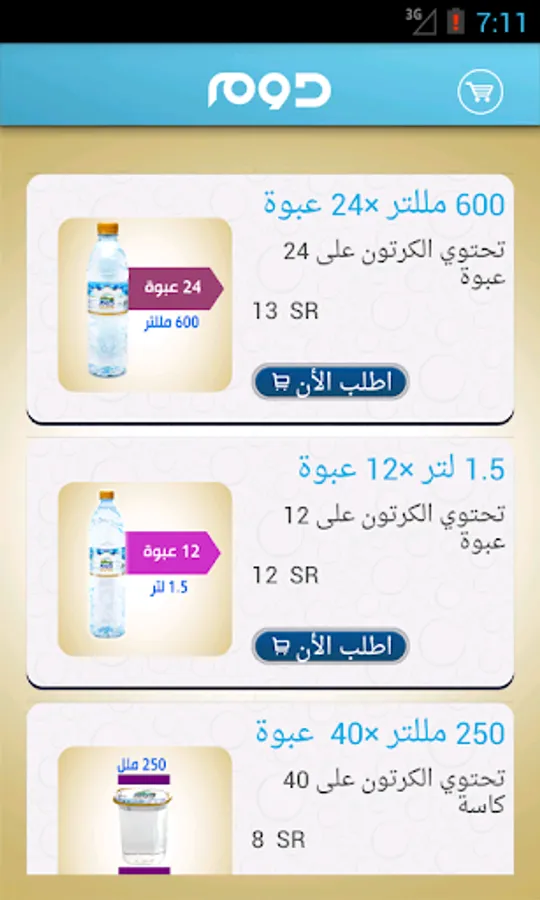 · إمكانية طلب منتجات مياه دوم لأكثر من 12 نوع منتج بتصنيفين (منتجات الكرتون – منتجات إستبدال الكوبون).