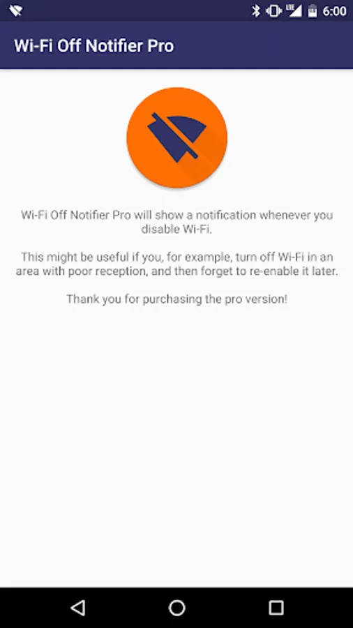 If you're forgetful and occasionally turn your Wi-Fi off but forget to turn it back on again, this app is for you. It will show a sticky notification when you turn your Wi-Fi off to remind you to turn it back on again!