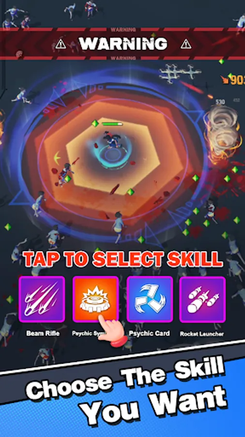 The game has super intuitive control. The heroes can automatically shoot enemies and automatically release their abilities when the energy set is full. You can endless harvest enemies, face off against 1000+ zombies at once and exterminate them with one-hand controls. Enjoy the thrilling feeling of clearing the map!