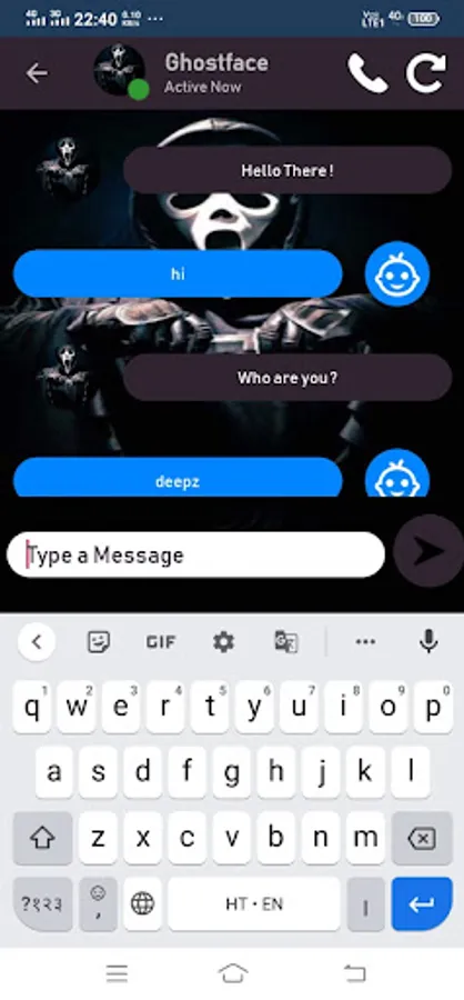 Ghostface Scary Video Call application to accompany your days in your spare time. When you feel lonely and boring, entertain yourself with fake video calls and Chat from your