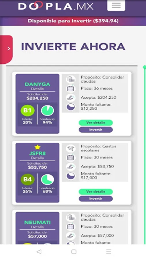 Doopla.mx is a platform that offers direct loans and investments between people. The loans granted on Doopla.mx are at fair interest rates and, on the other hand, investors obtain high returns.