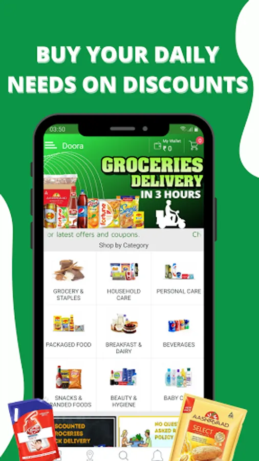 Doora is the only online grocery delivery app : delivering in lockdown in 2 hours in Delhi NCR. Discounted Grocery at your door in 2 Hours.