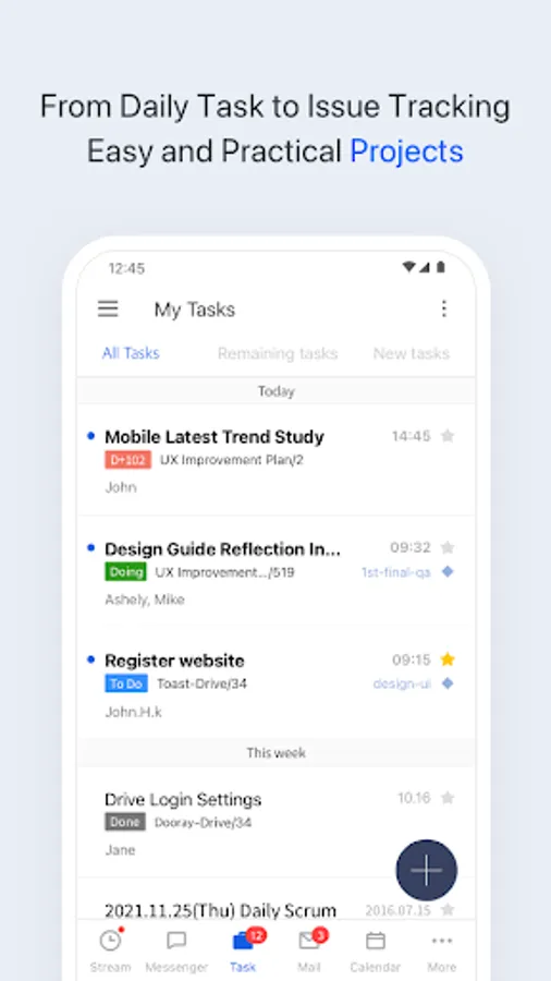 - Check new feed of projects, e-mails, calendar, messenger and wiki in Stream