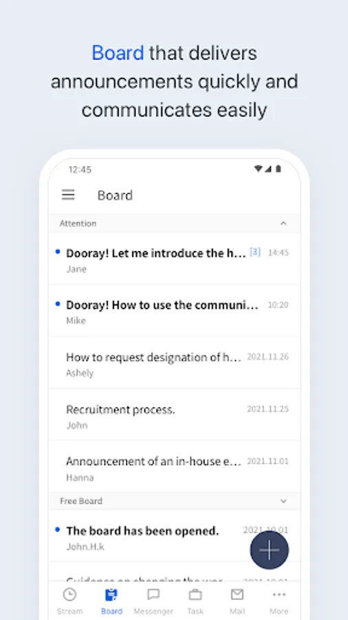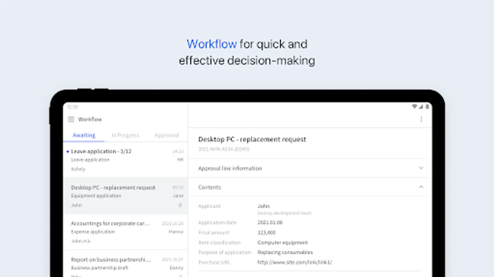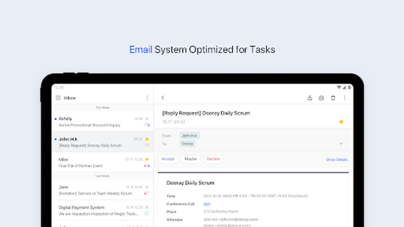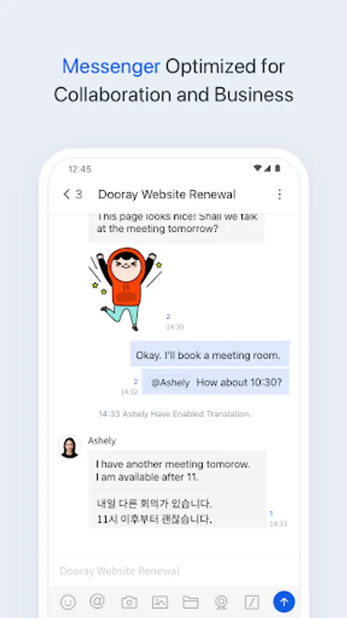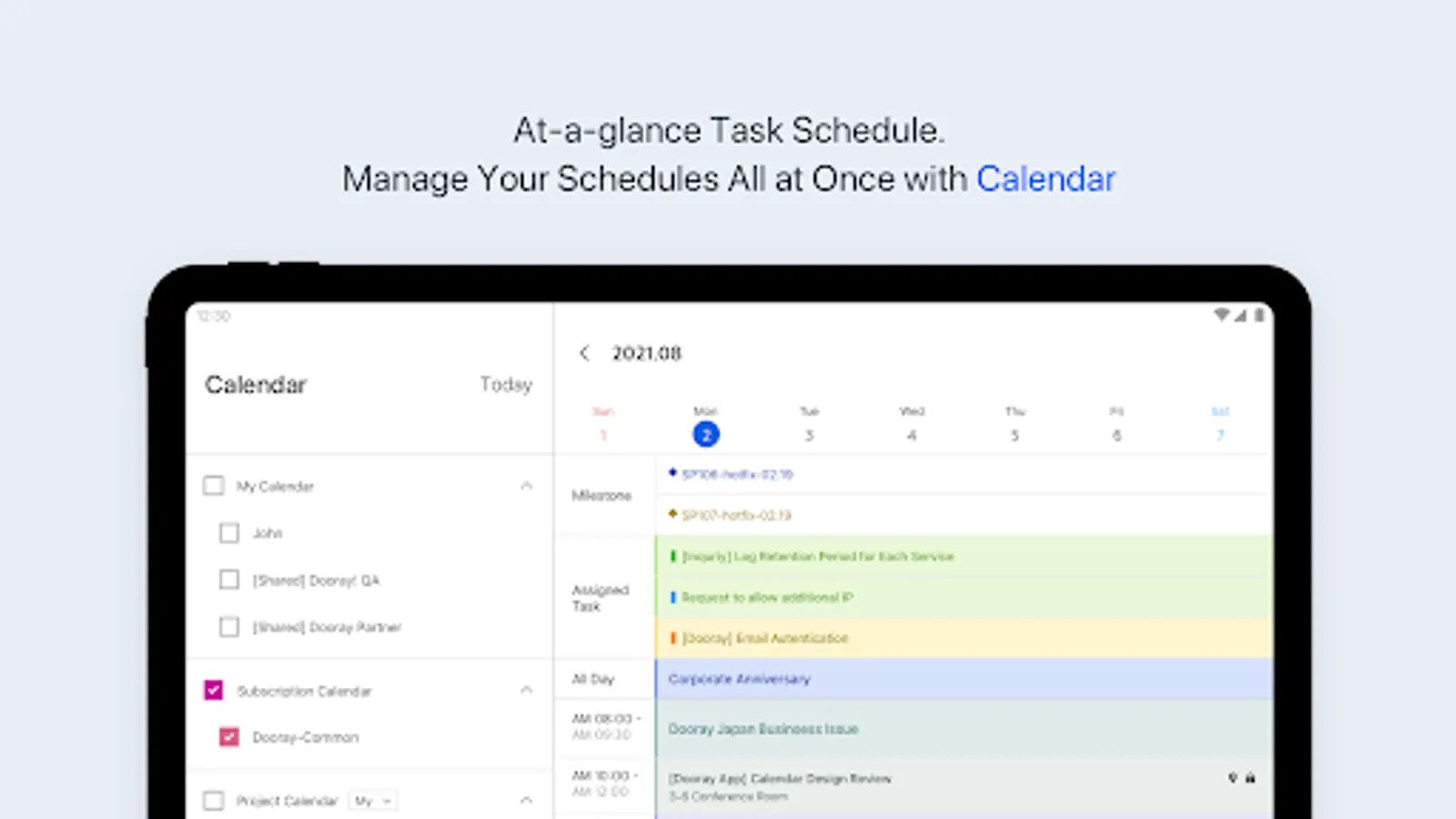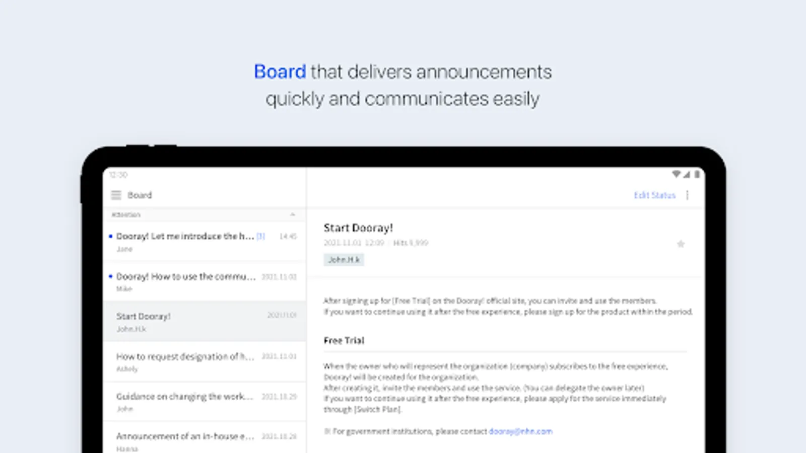 • Access the Dooray! website(https://dooray.com) at your office and the mobile app outside