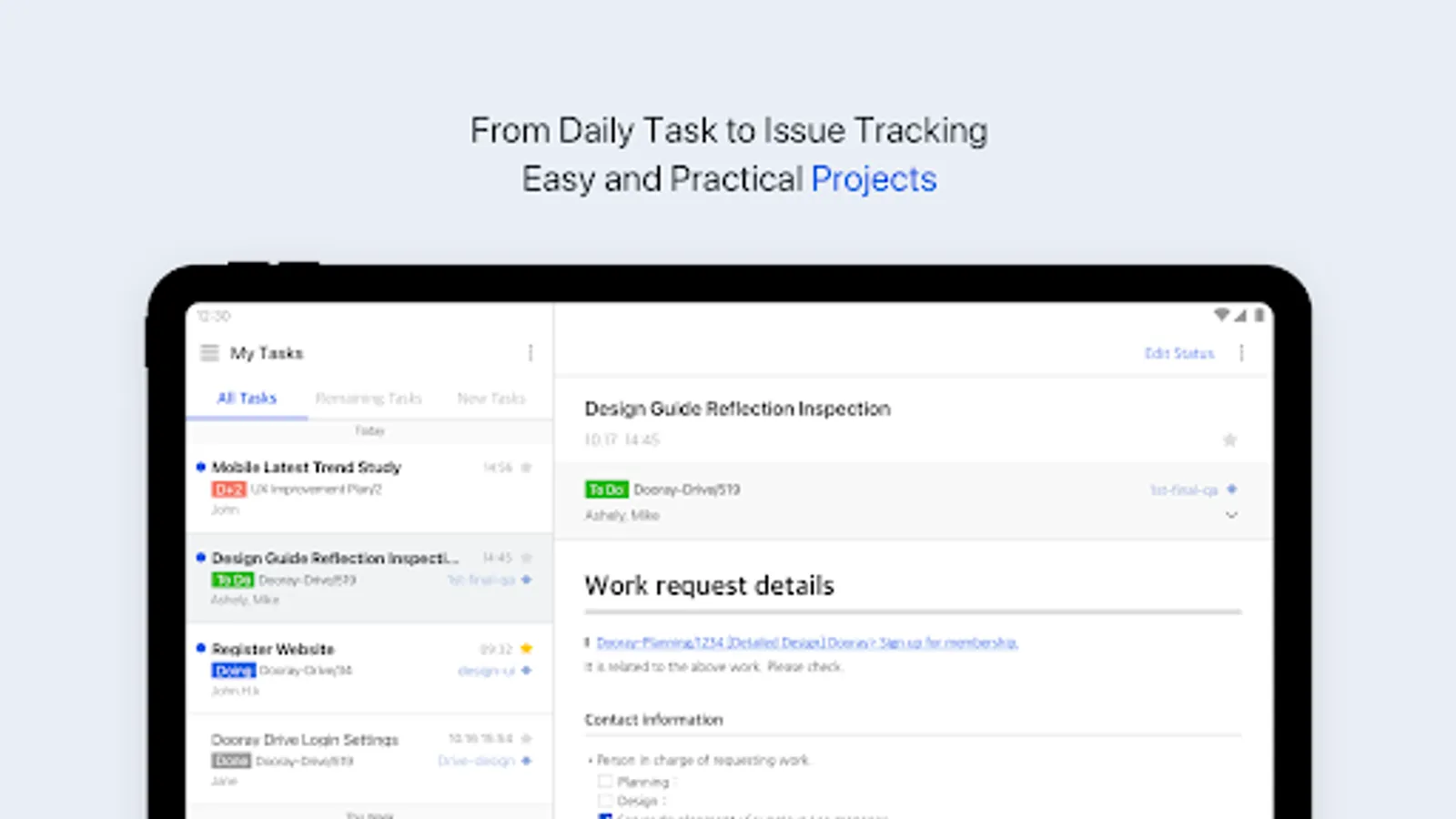 Dooray! provides all the services that your business needs – Issue tracker, Mail, Messenger, Meeting, Calendar, Drive, Wiki, Workflow, Communication board and more.