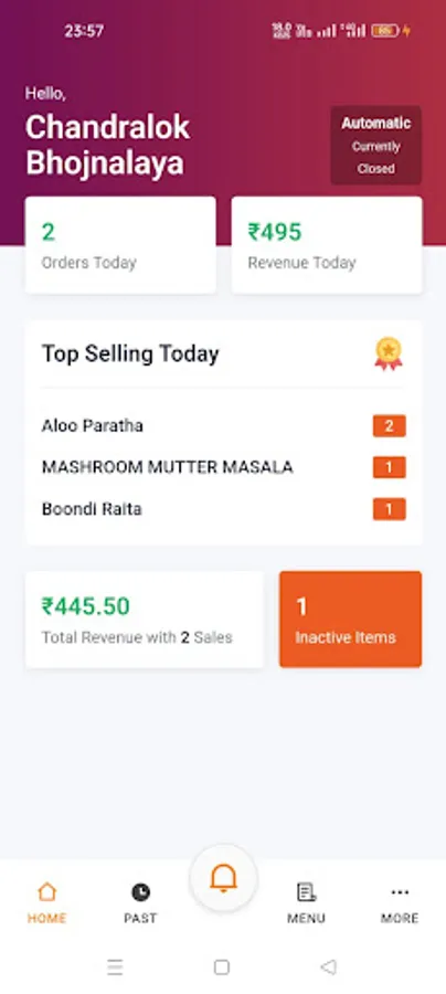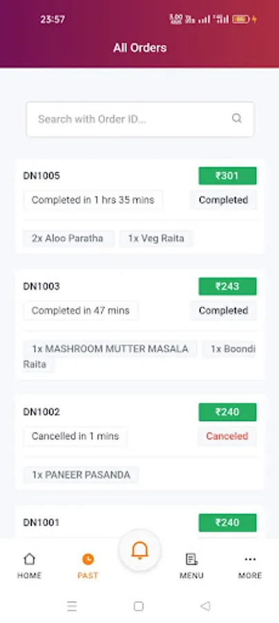 Food vendors or partner app for order notification