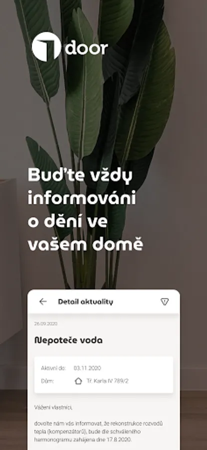 DOORONLINE is a portal for property management. The application can be used by all clients who have chosen R3 group s.r.o as their administrator. or Doorman s.r.o ..