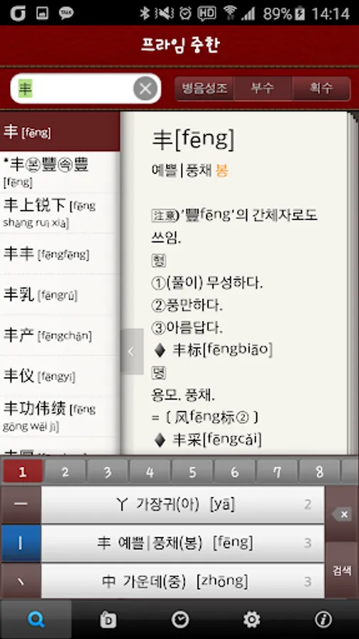 ▶[Powerful Search Method] Search using various methods such as Korean Chinese consonants, pinyin tones, number of copies, and total number of strokes