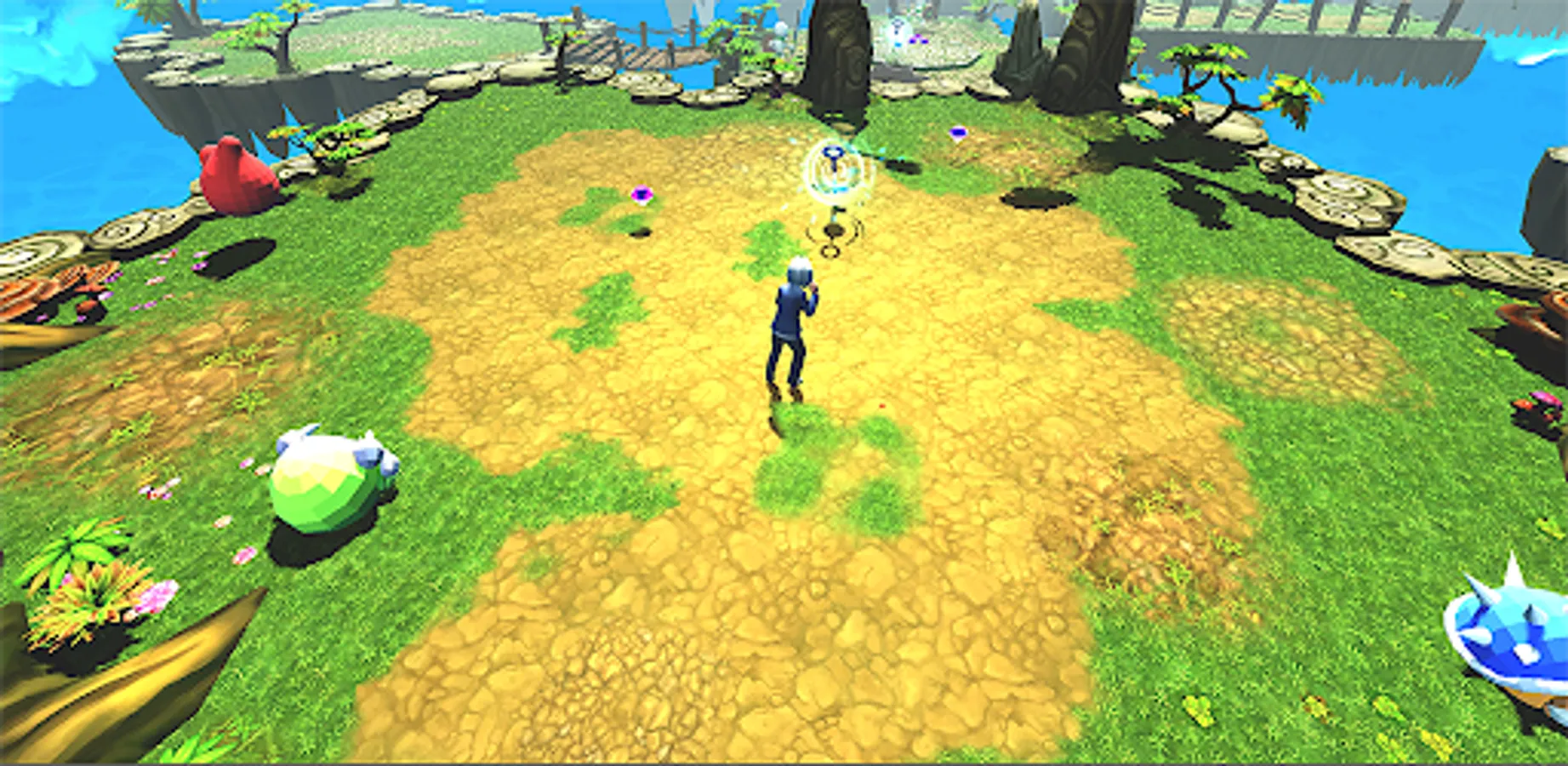The player avoids enemies and pickup collectibles gems and keys in