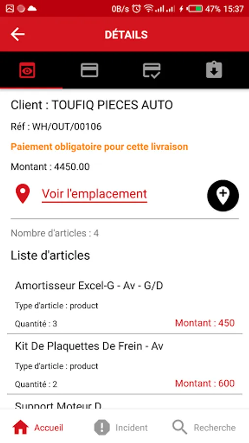The command will appear on the driver's app; here the driver will accept or deny pickup of the order once it is accepted, they would see customer's order information (name, phone number, address) and delivery details (address etc).