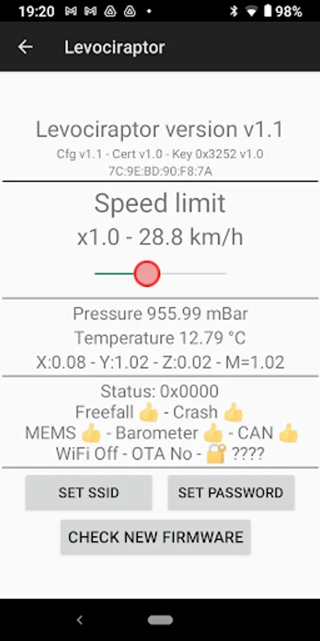 With the app you can select the speed limit of the device and update the firmware if required.
